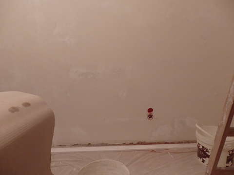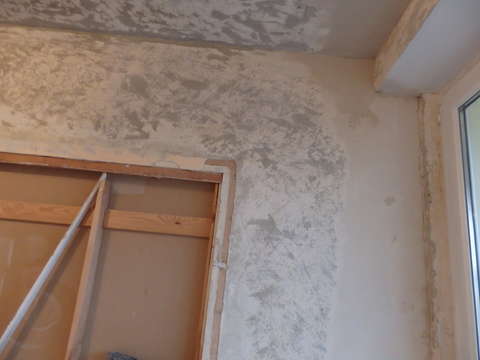 Po zaciągnięciu ścian gipsem.