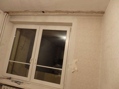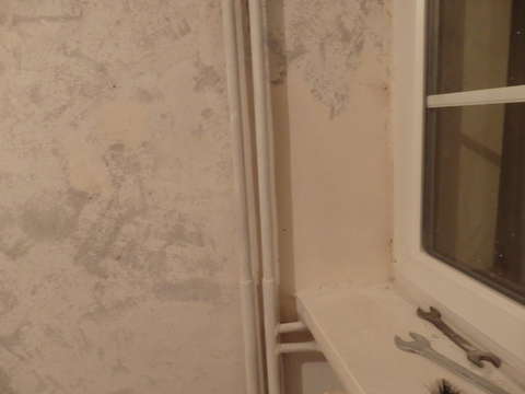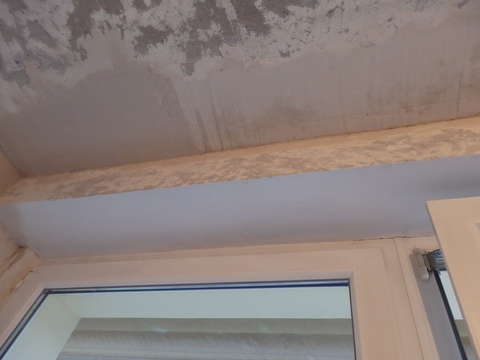 Załatana dziura przy oknie.