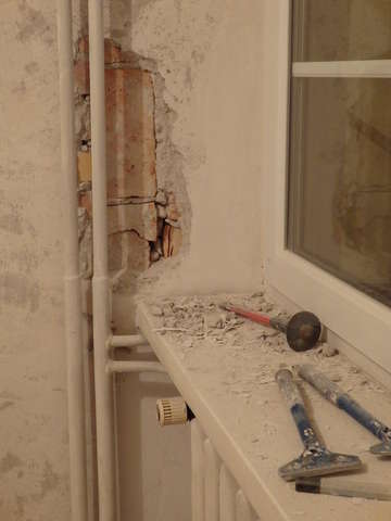 Przy drzwiach balkonowych musiał skuć zaprawę,