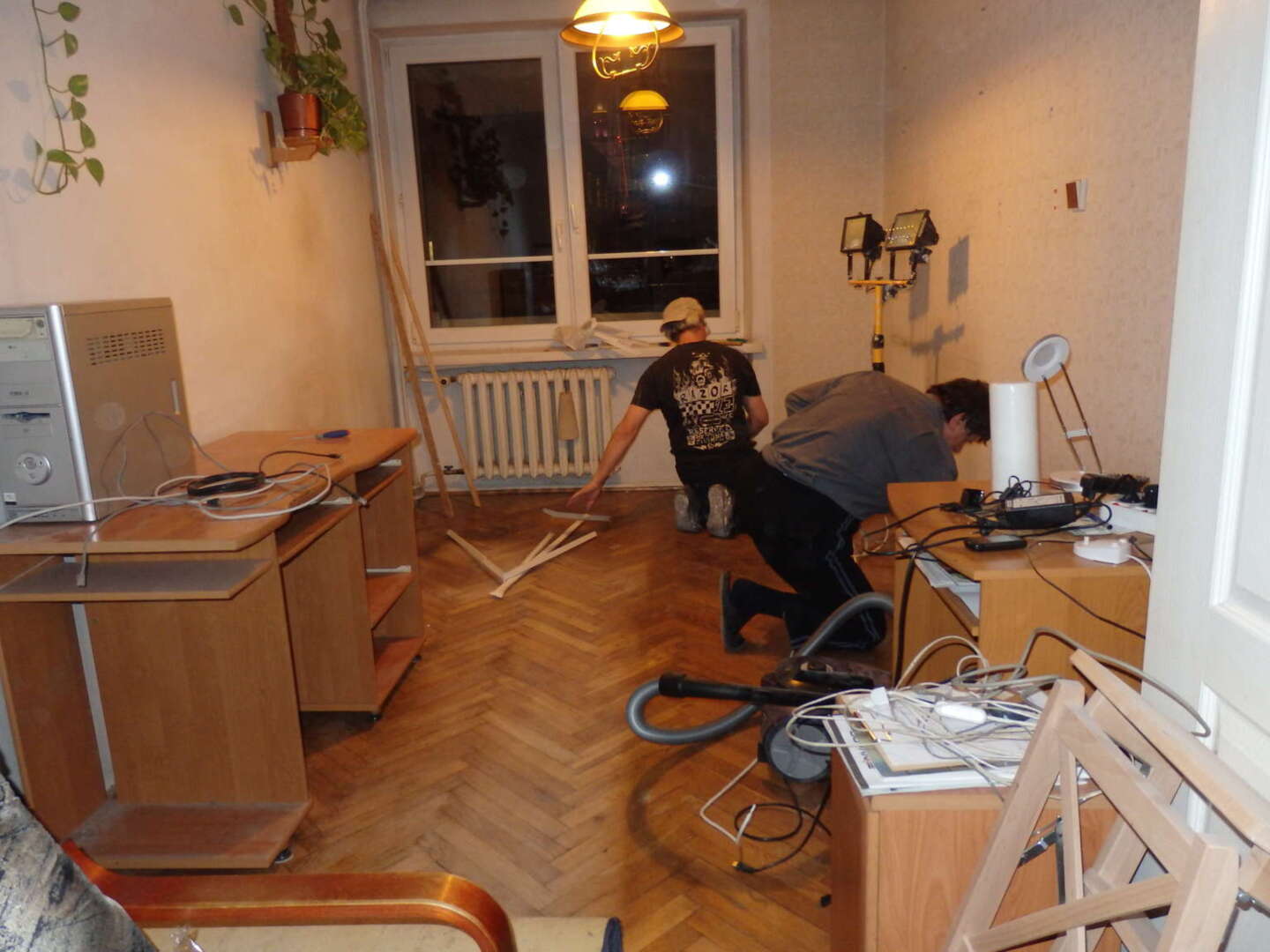 Panowie uporali się z przenoszeniem licznych kabli.