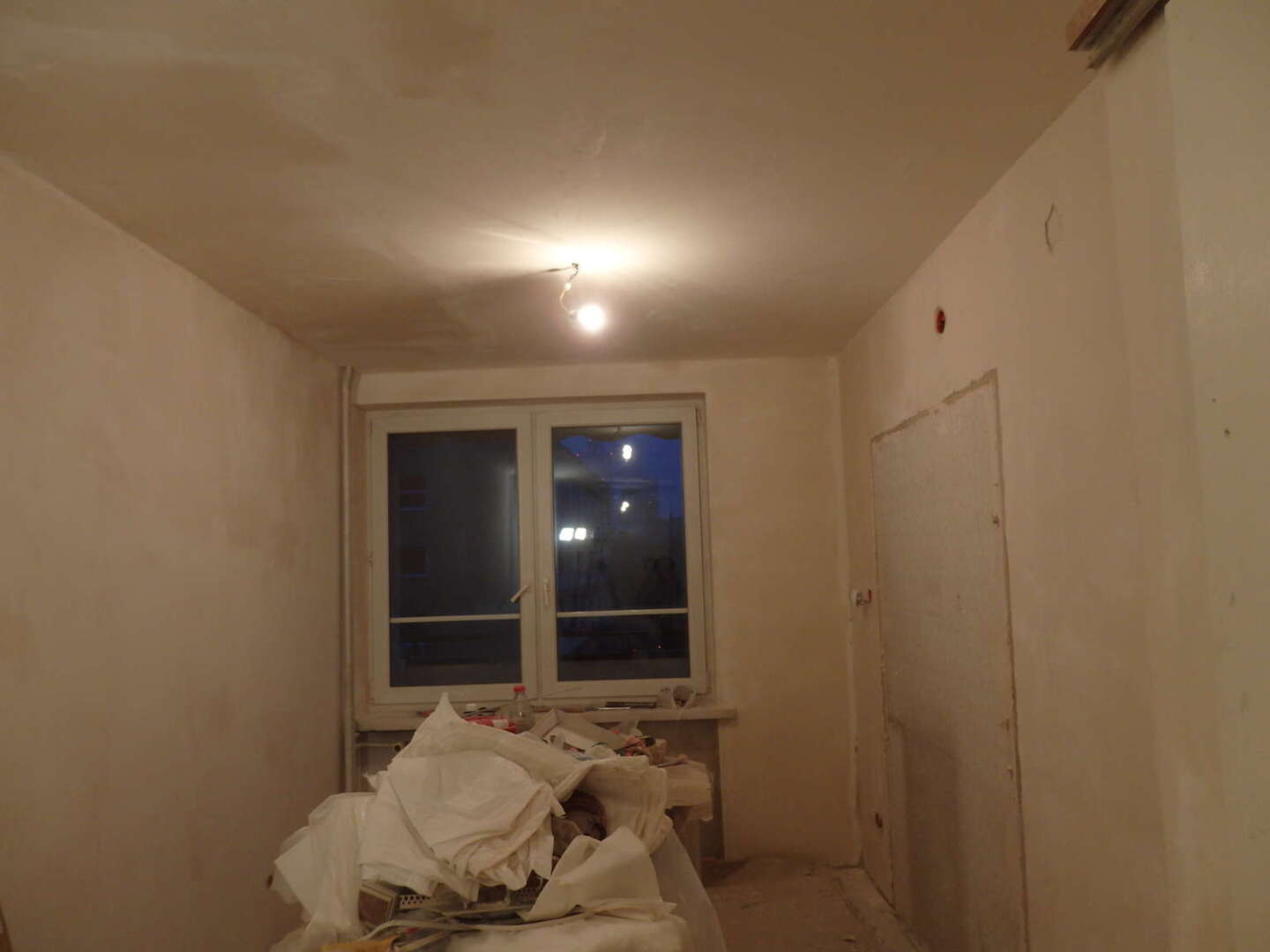 Po zaciągnięciu ścian gipsem.